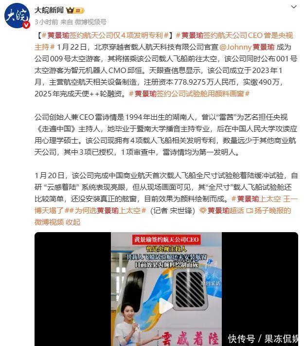 商业航天火了!演员黄景瑜要上太空,航天公司CEO曾是央视女主持